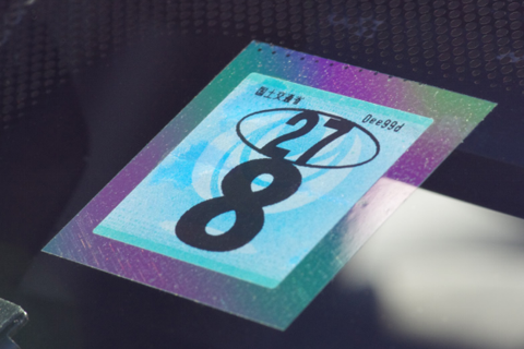 普通自動車の場合は、検査標章の隅に書かれている数字が車検満了年であり、中央付近に書かれている数字が車検満了月を表しています。