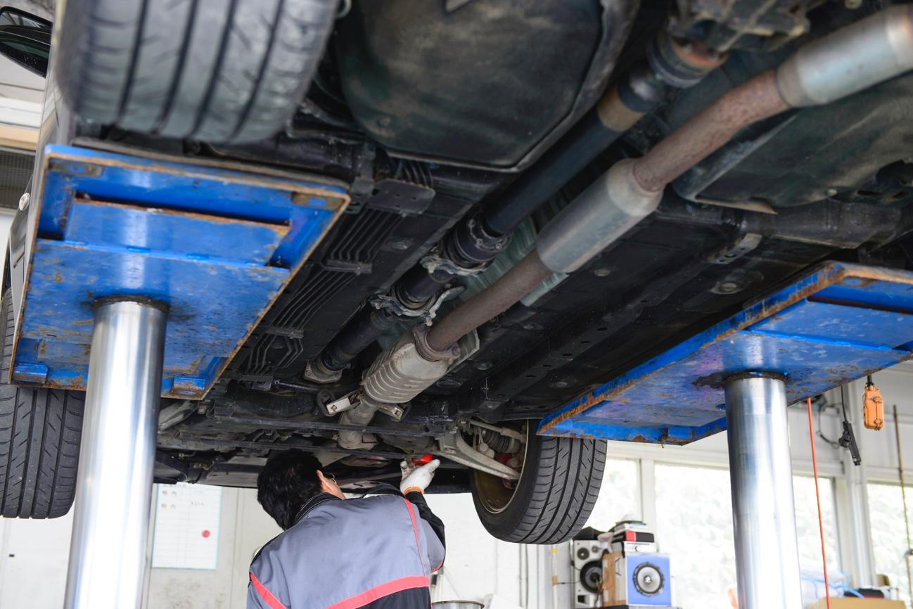「下抜き」の方法を実践するためには、フロアジャッキを用いて車体の一部を浮かせる必要があります。車体の底部にあるオイルパンから古いエンジンオイルを抜き出すためです。以下の手順を押さえておきましょう。
