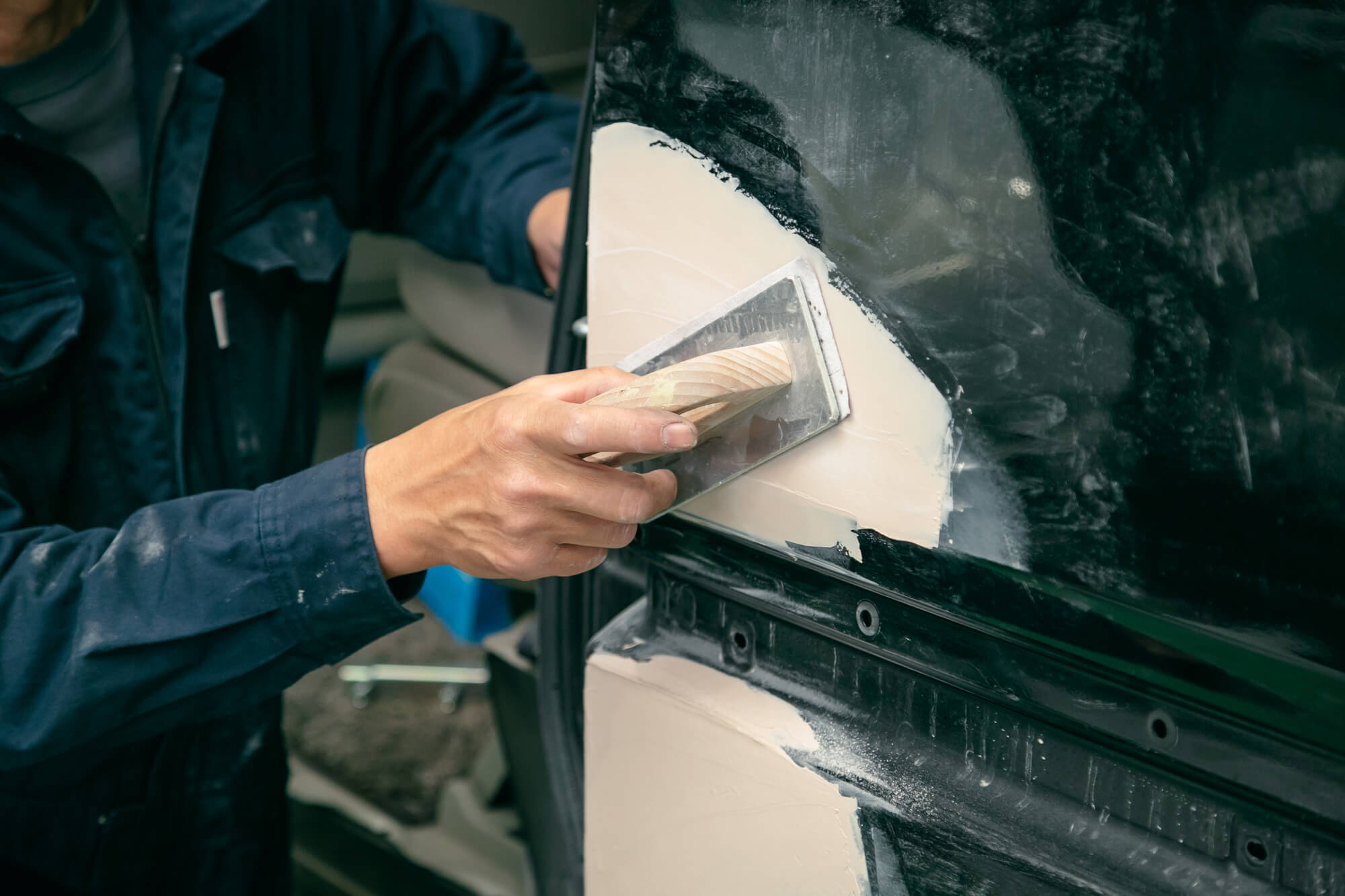 バンパーの修理では、まず傷付いた塗装面を磨く作業から始まります。荒さの異なる耐水サンドペーパーを使用して、塗装面をなめらかな状態にしましょう。次に脱脂スプレーで油分を除去し、専用のヘラでパテを塗り込みます。パテが乾燥した後は、再度耐水サンドペーパーで塗装面を整えましょう。