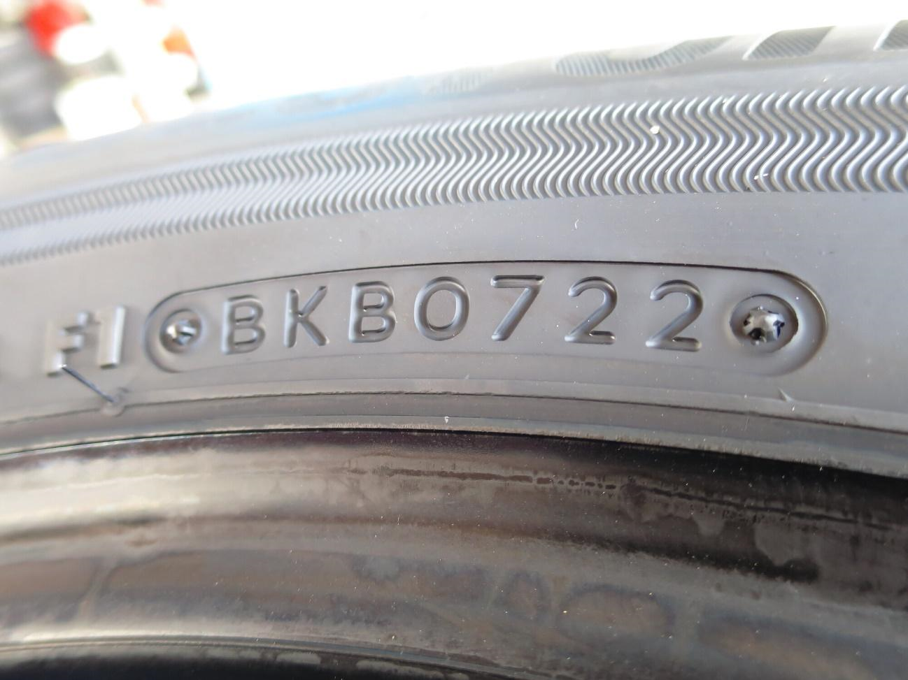 例えば、上記の画像の場合下4桁が「0722」で、2022年の第7週に製造されたことが分かります。一般的に製造年週は、タイヤの片面にしか表記がありません。見つからない場合は反対側を確認してみましょう。