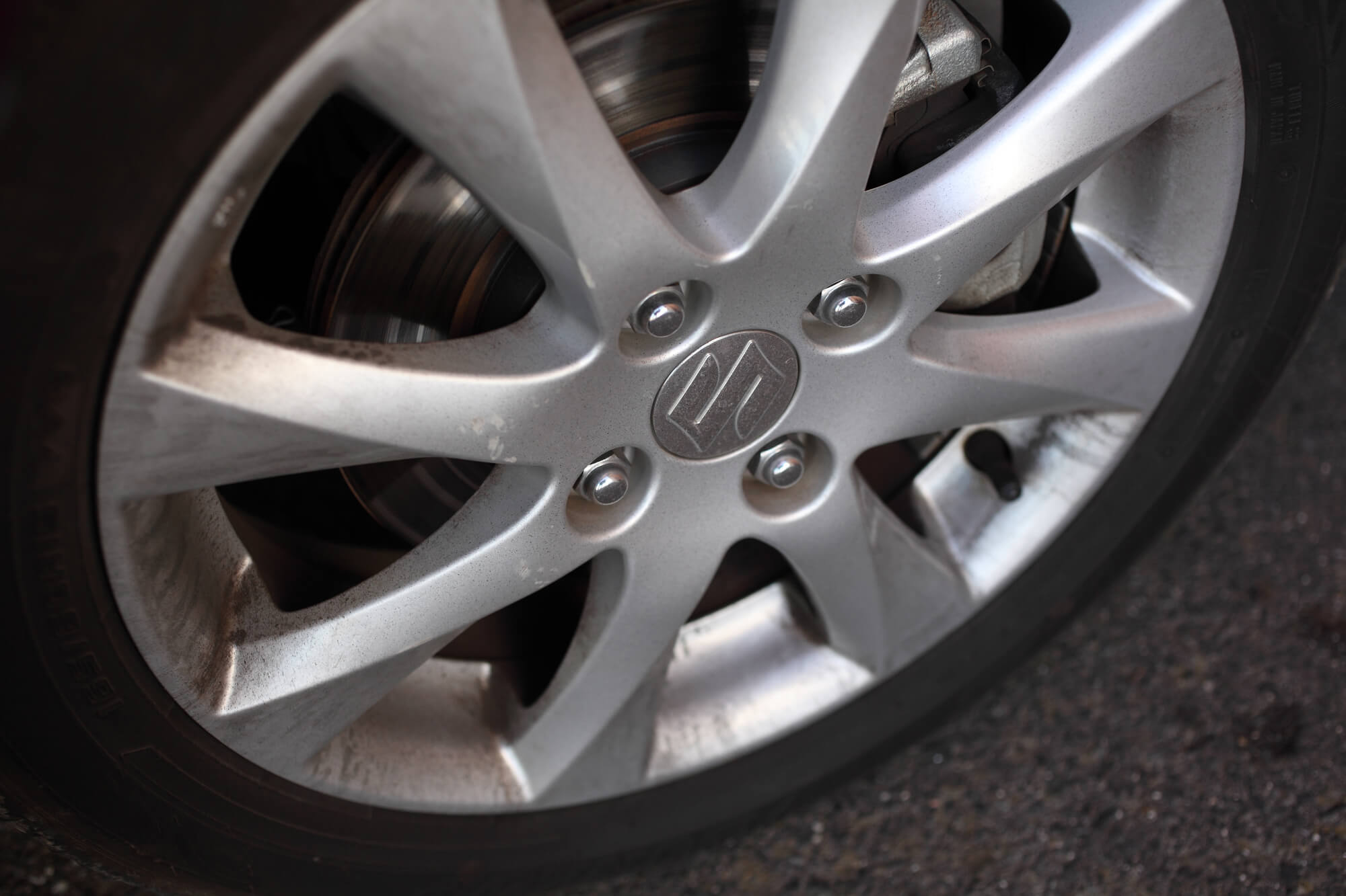 ブレーキダストは、ブレーキから発生する粉塵です。ディスクブレーキと呼ばれるタイプはブレーキダストが舞い散りやすく、ホイールに付着し汚れとなります。ブレーキダストには鉄粉が含まれており、表面にこびりつきホイールが黒くなります。